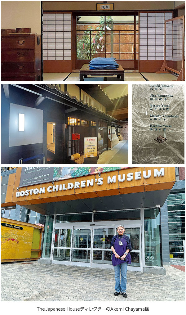さらに、初代理事長・湯浅八郎先生にまつわる新しい史実にも触れることができました。ボストン子供博物館にある「The Japanese House」の設立に八郎先生が深く関わっていたのです。1976年のアメリカ建国200年祭を契機に京都市から寄贈された町家の移築プロジェクト。日本の職人たちが泊まり込みで移築した記録映像が残されており、その関係者名簿の中に八郎先生の名を見つけました。文化交流の歴史の中で、学園の先人が大きな役割を担っていたことに深い感銘を受けました。